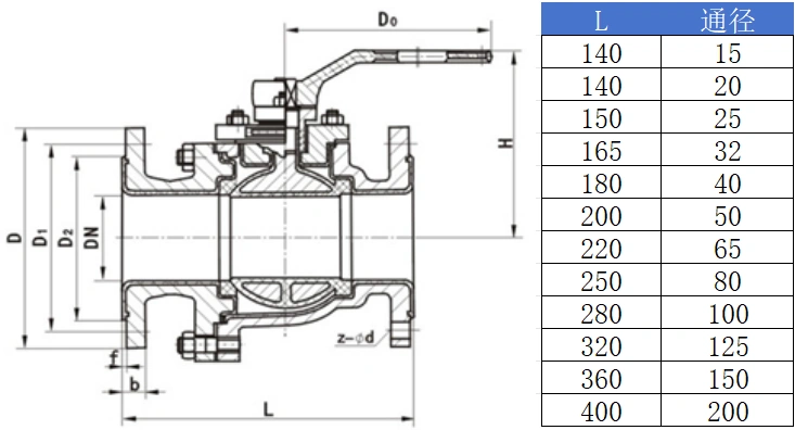 進口襯氟球閥尺寸